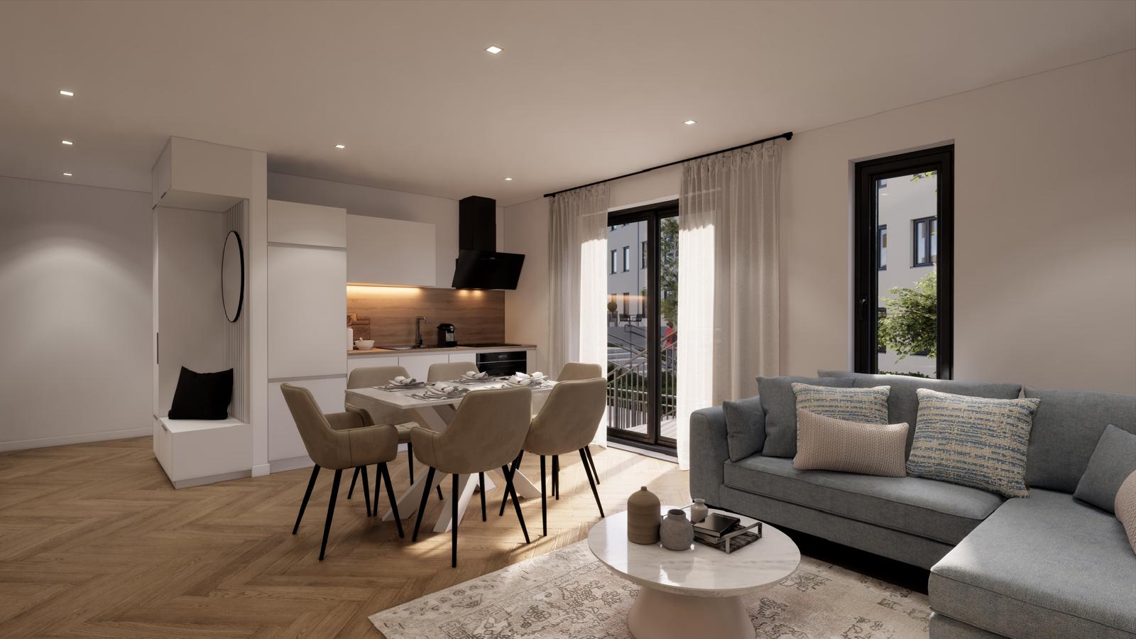 Insgesamt stehen zwei verschiedene Grundrisse zur Auswahl. Ein Grundriss mit einem großen Wohn / Essbereich und zwei separaten Schlafzimmern sowie einen Grundriss mit einem getrennten Wohnbereich und einem Schlafzimmer.